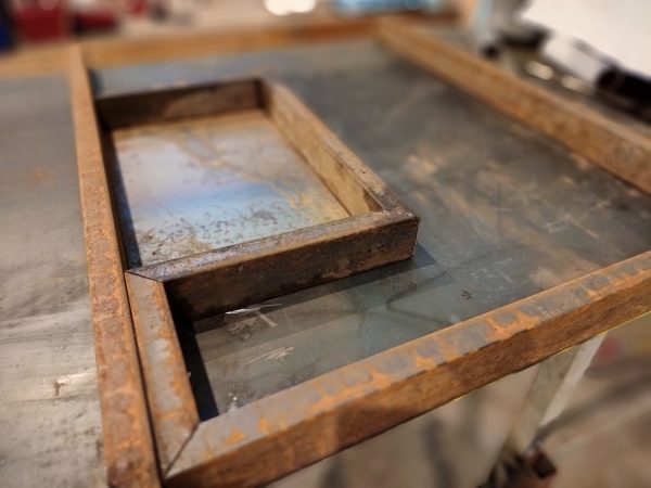Concrete, iron, pigments, acids, oil.