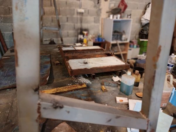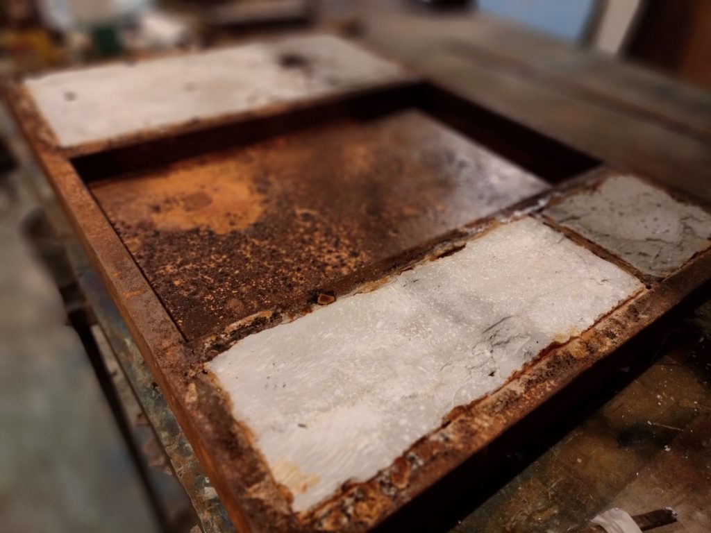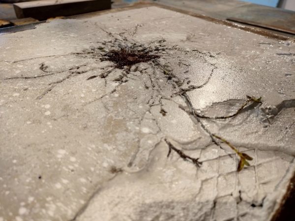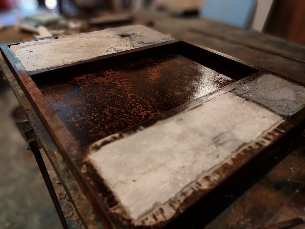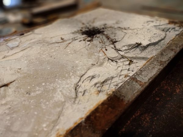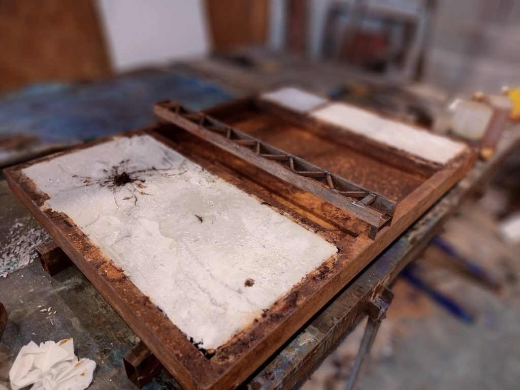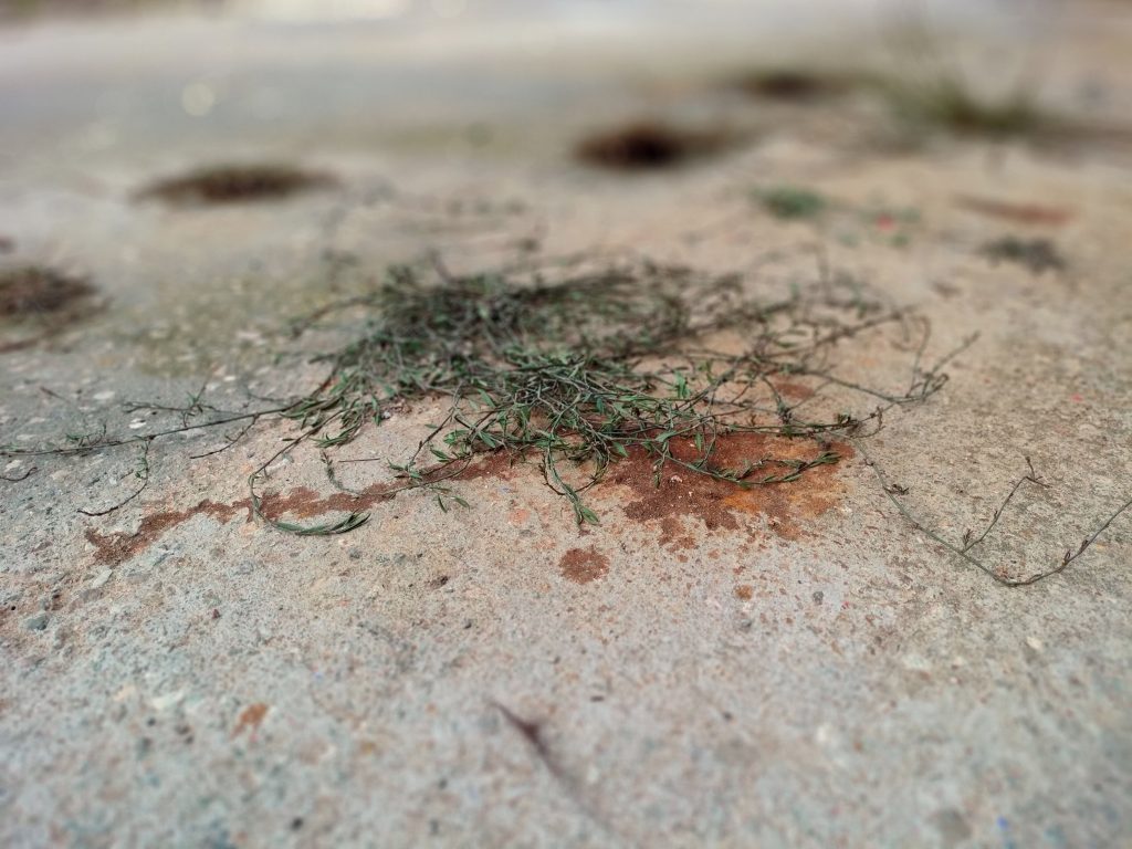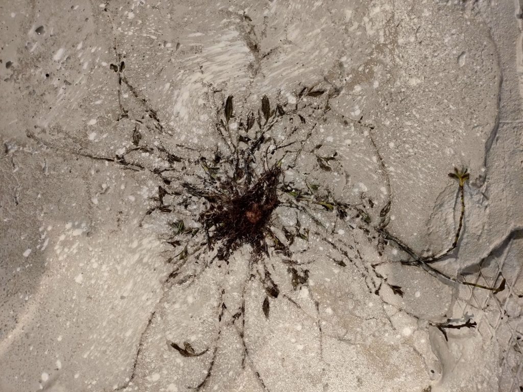 Iron, concrete, pigments, acids, oil, Polygonum equisetiforme.