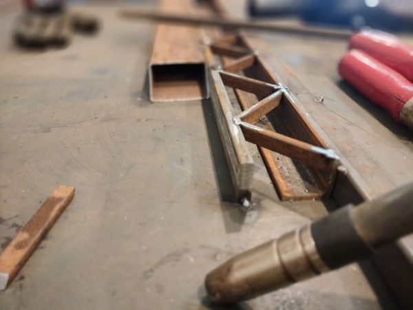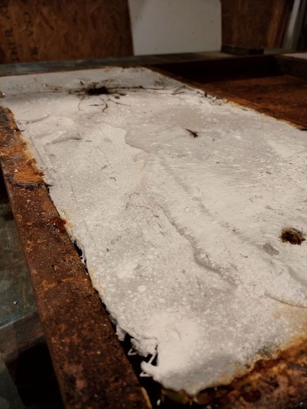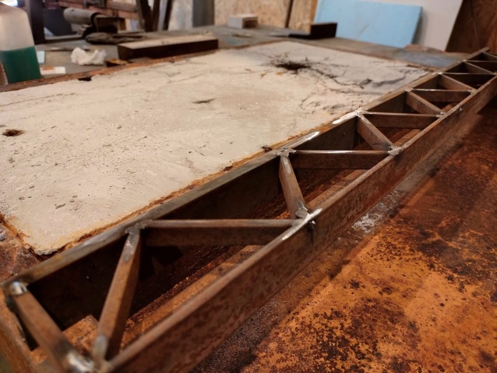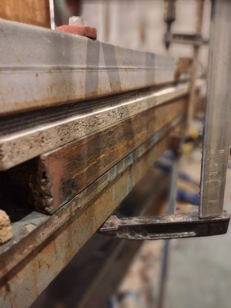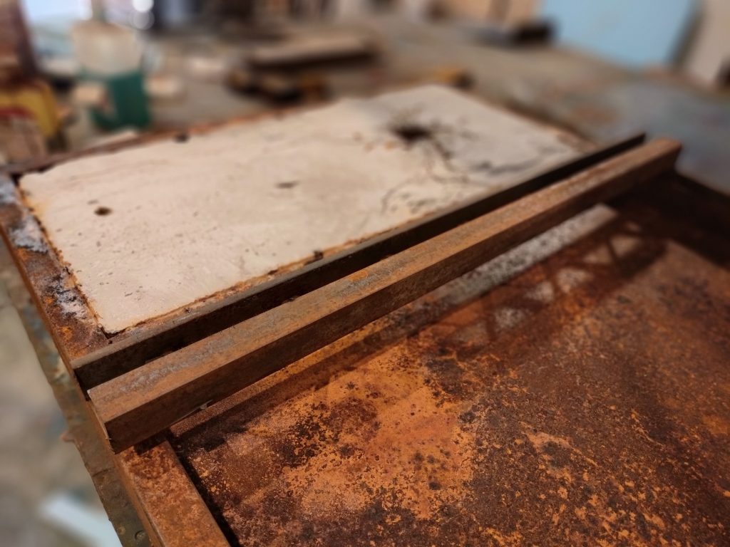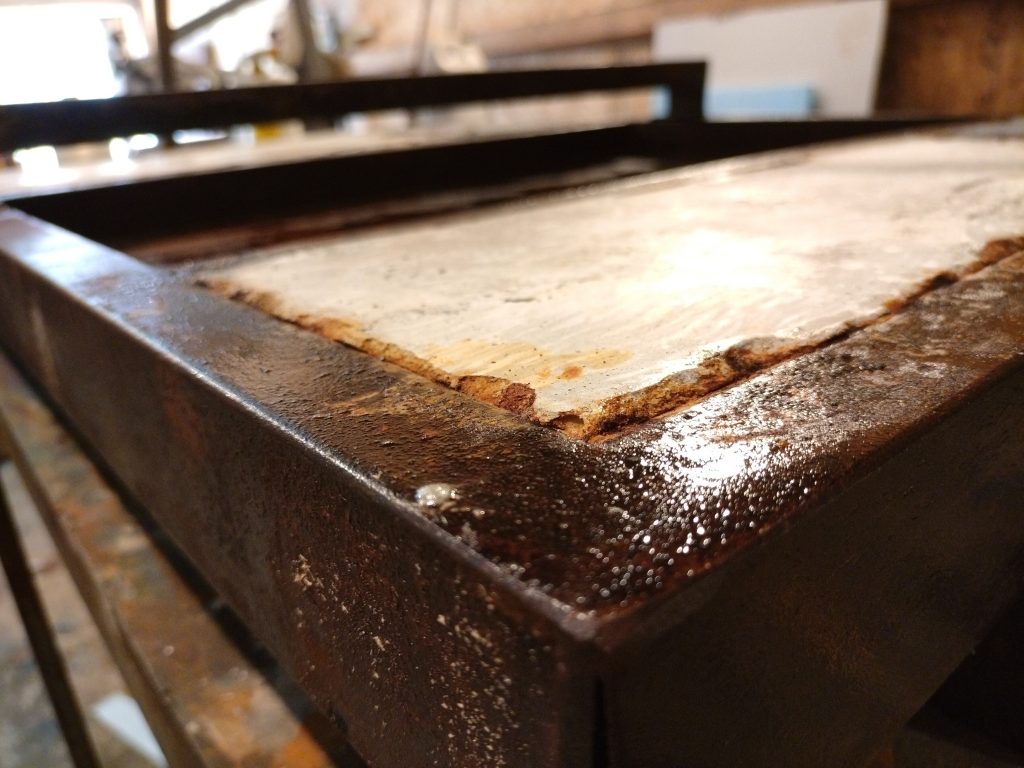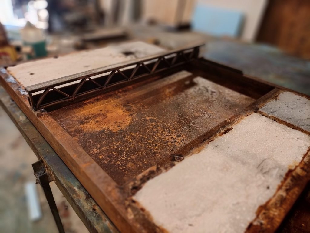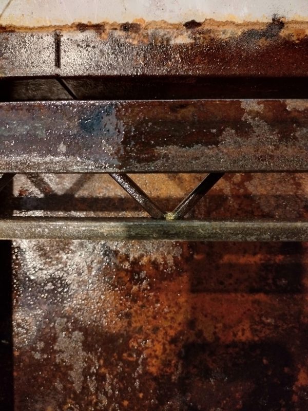 Iron, concrete, pigments, acids, oil, Polygonum equisetiforme.